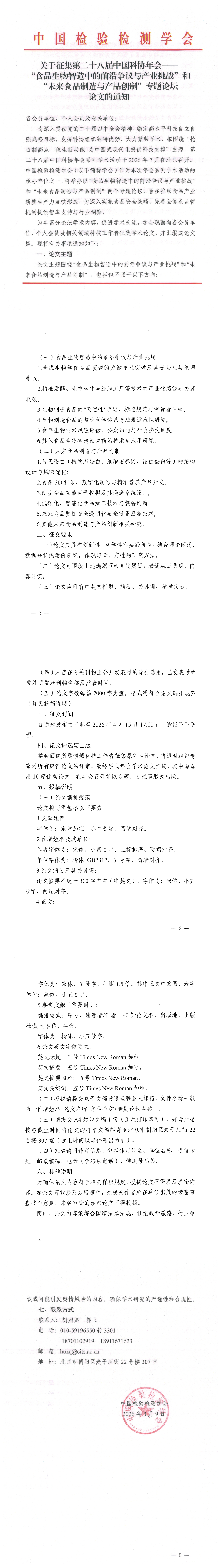关于征集第二十八届中国科协年会——“食品生物智造中的前沿争议与产业挑战”和“未来食品制造与产品创制”专题论坛论文的通知